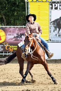 アマチュア最高峰のクラスであるNon Pro DVは、1st Goでスコアに大きな開きが無く混戦模様となっていた。1st Goでトップスコアを出しそのまま逃げ切ったのは、馬暦12年目にして嬉しい初のバックルを掴むことができた増田博昭騎乗のSailing Continental。特に好印象だったのは安定したガイドのサークルだ。ペナルティがつくようなミスも少なく、落ち着いた印象をジャッジに持たせるには充分だったことが勝利の決め手となった。