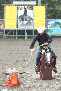 Green DV Header は、エントリー者が3人と少し寂しさが否めなかったが、土岐田 藍選手が、2度目の栄冠を手にした。 Non Pro DV Headerは、2回スローイングしてトータルポイント最高の2名がファイナル戦に駒を進めることができるシステムで、小林孝之選手とRowdy 長谷川選手がファイナルへと駒を進めた。 昨年は元より3年間グランドチャンピオンの座を、他の人に譲ったことなく名実共に日本一ローパーの名声を、欲しいままにしてきたRowdy選手を、プラスワンのスィングとキャッチングポイントを叩き出して下した小林選手が、見事日本一に輝いた。 最終日の最終種目であるローピングの時に雨が強くなって、ギリギリの馬場コンディションの状態ながら、恙なく3日間の大会を終了することができ、今年一年の状況を占うには未だ早いかも知れないが、選手のレベルとレイニングホースのクォリティの向上が、明らかに見て取れる大会であったように思う。 |