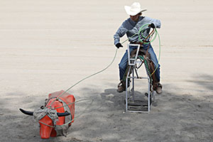 Reining Open DV 2nd Go Round Topsail Goldie 土岐田 騰馬 Owner 佐藤 一彦 1st Go 137.0ポイント 2nd Go 136.0ポイント トータル 273.0ポイント で、ハイスピードサークルそしてアグレッシヴなランダウンとアクティヴなパフォーマンスであったが、得点を伸ばすことができず、3位とは僅差の0.5ポイント差で、2位入賞を果たしたのであった。 そして、Chics Golden Dun Laitは、Npn Pro /Openのダブルチャンピオンを手にしたのであった。 Team Roping Dummy Header Non Pro DV