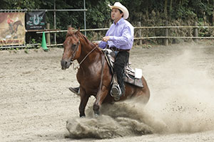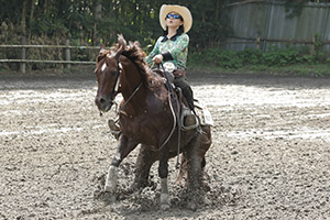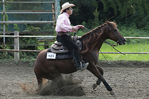去る8月24日(水曜日)から27日(土曜日)の4日間に亘って、PRBCのサーキットの2nd Scene が開催された。 The Day 1st 8月24日(水曜日) One Day Before Ancillary Open DV 4頭のエントリーがあり、それぞれが大会本番のスクーリングとしてショーイングされたようである。 Moonlights Sailor 土岐田 騰馬(千葉県) Owned By 石山 真実(千葉県) がスピンとストップで得点を稼ぎ72.5ポイントをマークし優勝した。 The Day 2nd 8月25日(木曜日) Non Pro DV 1st Go Round NRHA #4 ディフェンディングチャンピオンのSpooks Serenade 土岐田 藍(千葉県) は、リードチェンジでペナルティがあったが、+1/2のサークルとスピンで得点し138.0ポイントを獲得してトップに立った。 2位タイに付けたのは、Moonlights Sailor 石山 真実で、リードチェンジでペナルティが科せられたが+1/2のスピンのパフォーマンスで135.0ポイントを獲得した。そして、同スコアで2位タイに付けたのはJust Dunit 石塚 泰子(千葉県)で、+1のスピンパフォーマンスで、優勝圏内に位置したのである。 そして、ノンプロの優勝は、この3者の三つ巴の様相を呈したのである。 Open DV 1stGo Round NRHA #6 Open DVの1st Goは、142.0ポイントから138.0ポイントの間に5頭が犇めく混戦となったのである。 トップの142.0ポイントマークしたのは、Chics Top Cody 土岐田 騰馬で、+1/2のストップとスピンで余裕のショーイングでトップに付けたのである。 2位に付けたのは、Spooks Wish Whiz 土岐田 勘次郎 Owned By 落合 身知子(埼玉県)で、安定したスピードコントロールとスピンで得点し、トップに0.5ポイントビハインドで初優勝に望みを繋いだのである。 3位に付けたのは、Eighty Six Classic 袴田 桂子(千葉県)Owned By 磯野 ひろ子(千葉県)で、ストップで得点を稼ぎ141.0ポイントをマークした。 4位は、Royalprincess ED 土岐田 勘次郎 Owned By 林 雅子(東京都)で、安定したスピードコントロールで139.5ポイントのアベレージ得点をマークした。5位は、Topsail Goldie 土岐田 騰馬 Owned By佐藤 一彦(千葉県)で、138.0ポイントマークして、スピンで+得点を稼ぎ、ファイナル如何で上位進出を狙える位置に付けたのである。 The Day 3rd 8月26日(金曜日) Ancillary Open DV Just Dunit 土岐田 騰馬 Owned By 石塚 泰子(千葉県)は、71.5ポイントをマークした。翌日のNon Pro DVのショーイングのため、ランダウンの修正を施すためのパフォーマンスであった。 The Day Final 8月27日(土曜日) Non Pro DV 2nd Go Round Just Dunit 石塚 泰子は、準備万端であったが、ロールバックのところでバックアップの落とし穴に嵌り、残念ながらスコア0となって優勝戦線から離脱してしまった。 La Tigre Del Cielo 石山 尚子(千葉県)は、スコアは振るわなかったものの、無難にまとめて3位に滑り込むことができた。 Moonlights Sailor 石山 真実は、馬のポテンシャルを活かして挽回を目指したが、ケアレスミスを犯し得点できるマヌーヴァーで+を獲得することができず、133.5ポイント トータル268.5ポイントとなって、リザーブチャンピオンとなり、最終戦にグランドチャンピオンをかけてリベンジすることとなったのである。 そして、Spooks Serenade 土岐田 藍は、リードチェンジでペナルティを科したものスピンでスコアを獲得し135.0ポイント トータル280.5ポイントで、見事チャンピオン輝き、コングレスに続き2連覇を達成したのである。 更に、この優勝を以て土岐田 藍は、PRBC史上初の Ten Million Yen Non Pro Riderとなったのである。 Open DV 2nd Go Round Spooks Wish Whiz とRoyalprincess EDの2頭は、初めての入賞または優勝を狙っていたが、両頭とも失速して、敢え無くその栄冠は、最終戦に持ち越しとなってしまった。 そして、見事優勝したのは、Chics Top Cody 土岐田 騰馬で、往年のパフォーマンスの切れ味を垣間見せるパフォーマンスで138.5ポイントTotal 280.5ポイントをマークした。 リザーブチャンピオンに輝いたのは、Eighty Six Classic 袴田 桂子Owned by 磯野ひろ子(千葉県)137.0ポイント Total 278.0ポイントで、ほぼアヴェレージスコアを獲得し、名馬ならではのパフォーマンスであった。 3位は、堅実な演技を取り戻して139.0ポイント Total 277.0ポイントをマークしたTopsail Goldie 土岐田 騰馬 Owned By 佐藤 一彦(千葉県)であった。