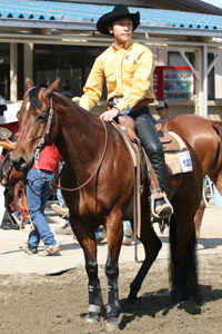 とは言え、とても調教と呼べるものではなかった。自分では考えているつもりだったが、例えば、ディパーチャーでいきなり強く脚を当てておきながら、馬が出ない、あるいは出過ぎると叱るといったことが多かった。しかも、その叱り方が半端ではない。虐待と呼ばれても仕方ないものだった。 自分で馬の反抗を作っておきながら、徹底的に叱るという悪循環。「見ていると、吐き気がする」。土岐田からそう言われたこともあるほどだ。今思えばひどいものだが、当時はそれが正しいやり方だと信じて、疑いもしなかった。 その考えが覆されたのは、翌2004年。レンタル馬に乗って、いつものように力任せに叱りつけると、馬がしゅんとおとなしくなった。1鞍でいい調教ができたと満足した。次は、そのころ乗馬を始めていた尚子が乗る番。石山は、尚子が自分の調教の成果を感じて喜ぶだろうと思っていた。ところが、尚子が乗り出して数分もしないうちに、馬は制御不能となり、馬場の外へ。 衝撃だった。自分が正しいと思う方法で調教していたが、それがまったく間違っていたのは明らかだった。力で屈服させたつもりでも、ライダーである石山との信頼関係が全く結ばれていなかったのだ。帰りの車の中で、尚子と話し合った。「力に頼らないやり方で乗ってみたら」と提案され、これまでの乗り方を封印することにした。力任せに叱りつけたら下馬する。尚子からこんなルールを課された。 それでも、大会では派手なことがしたかった。サークルでは思いっきり脚を入れて、スピードを出す。試合後、ビデオを見ながらの反省会で、土岐田から、「ショーイングは馬を見せる場所でもある。これを見て、欲しいと思う人がいますか」と注意されることもあった。 転機が訪れたのは、2005年後半。土岐田から、プログラムをよく考えて1鞍を乗るようにアドバイスされた時だ。具体的には「診断」「調教」「確認」の3つを意識するように言われた。つまり、まず馬の状態を診断し、理想と異なるところがあれば調教で直し、直っているかどうかをマヌーバの中で確認するという作業だ。この作業によって、1鞍1鞍少しずつ理想に近付けていく。これをやっていけば、大会でもスコアが出せるようになると言われ、なるほどと納得できた。すでに、現在のSmart Wimp Olenaに乗るようになっていた。 |
