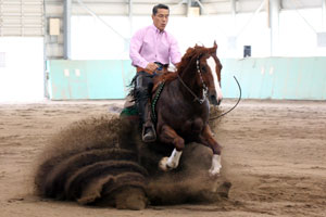 しかし、ストップに至るランダウンでは明らかに、馬の抑えがきかなくなっていた。「馬はショーイングの間に徐々に荒れていった」と騰馬。小林もスコアには満足したものの、馬が手の内にあるという実感は味わえなかった。「馬をコントロールできていなかった。馬なりだった」 それは、続くOpenディビジョンの1st ゴーラウンドで、悪い結果となって出た。騰馬の騎乗したGrandeはサークルやスピンは落ち着いてこなしたものの、フィギュアエイトでキッキングをすると、その後はショーイングを嫌がり、コントロールできない状態に陥った。 大会の圧巻はむしろ、ここからの騰馬の調整ぶりだった。大会2日目のAncillary Class Openディビジョンでは、Grandeに落ち着いてランダウンをさせ、その結果、スライディングストップもこれまでにないリラックスしたものになった。そして、同じ日のOpenディビジョンの2ndゴーラウンドでは142.0の高スコアを出してみせた。 「良い状態で小林さんに馬を渡すことができた」。騰馬の言葉を待たずに、それは誰の目にも明らかだった。小林が最終日のLtd Non ProとInt Non Proの両ディビジョンでバックルを手にするのも決して夢ではない、と推測する向きもあったほどだ。しかし、蓋を開けてみれば、また同じ光景が繰り返されることになった。 小林は最初に出場したLtd Non Proディビジョンでは、物見したためにハミを引きすぎたり、リードチェンジで脚を強く当てすぎたりした結果、Grandeのテンションが上がって崩れ、スコアは124.0。 Int Non Proディビジョンの2ndゴーラウンドでは、さらにコントロールできない状態になって、左サークルが大きく膨らみ、思わず両手を使ってスコア0となってしまった。「馬の状態は良かったのに、いつもの悪い癖が出た」。小林が悔しがる、あいにくの結果となった。 |