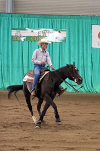 Shesa Reincarnationに騎乗した芙美恵もサークルから積極的に攻めた。高速スピンはプラス1/2からプラス1の高い評価を得て、最後のスライディングストップでもプラス1/2のスコア。集中力を切らさない、安定したライディングは、若手の手本となるものだった。芙美恵は「なかなか難しい馬で乗り始めたころは苦労しましたが、夫やトレーナーの土岐田騰馬さんのアドバイスが活きました」と、晴れやかな笑顔を見せた。 長谷川がNon Proディビジョンでバックルを獲得するのは、2000年のEWPC Congress以来。1stゴーラウンドでは、いつも通りの安定感のあるサークルやスピンを見せたが、ランダウンでは愛馬のTaris Peppy Joに急激に加速してしまう悪い癖が出て、3位にとどまった。しかし、2ndゴーラウンドの前日、トレーナーの土岐田勘次郎の猛特訓を受けて調整。本番ではその成果をすぐに発揮する勝負強さで、徐々に加速する見事なランダウンを披露。144.0のトップスコアをたたき出し、逆転を果たした。