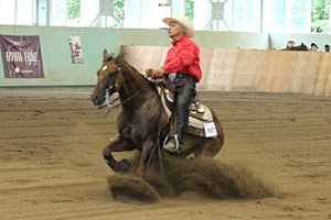 Junior Horse DVは、Non Pro DVよりも大波乱になってしまった。初日トップスコアで本命視されていたFifty Nifty Goldに騎乗した土岐田騰馬は、サークル・スピンとも可成りいい得点をマークする演技を見せ、且つ1回のロールバック以外は、大凡+1のスライディングストップだった。しかし落とし穴があった。セカンドストップのレフトロールバックでバックアップしてしまい、ペナルティ0を喫してしまった。