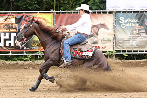 今大会で最も素晴らしいショーイングと感じたのは、このクラスのチャンピオンに輝いたStyle With Me 諸岡 辰浩(東京都)で、申し分のないサークルのスピードコントロールと+1に匹敵するスライディングストップを見せてくれた。 Ltd Non Pro DV このクラスも、グリーンに負けず劣らずの見栄えのするパフォーマンスを見ることができた。 2位に付けたのは、Primary Dunit 岡崎 喜一(福岡県)で、少々サークルにラフさが見られたものの、この馬の得意なスライディングストップで得点して次回のチャンピオン席を予約したできだった。 そして、優勝を宣言して九州から参戦してきたDunit Pepper Doll 木崎 亜依(福岡県)は、ブレークゲイトがあってパフォーマンスはグリーンライダーとは思えないできだったが、3位に泣いた。 グリーンとリミテドのクラスは、ライダーがビギナーであるために、バランスやコンタクトにラフなところが見られるものだが、馬のクォリティが際立っていると、ライダーの未熟さをカバーして余りある典型を見たような気がする。