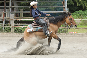 初夏を思わせる気候の中で、5月24日(水曜日)から4日間 The 40th EWPC Congress 2023が開催された。 The Day 1st 5月24日(水曜日) ■Paid Warm Up 2 Sectionのエントリーがあって、各々10分間ショーホースのスクーリングが行われた。 The Day 2nd 5月25日(木曜日) ■Non Pro DV 1st Go Round 4ポイントの間に4頭がひしめく大混戦となった。 そんな中でトップに立ったのが、Spooks Serenade 土岐田 藍(千葉県)で、+得点となるストップと安定感のあるサークリングで、141.5ポイントを叩きだした。 これに続いたのは、Just Dunit 石塚 泰子(千葉県)で、ストップとサークルのスピードコントロールで得点を稼いで、138.5ポイント、これと同点だったのは、ディフェンディングチャンピオンのRemarkable Steps 増田 明子(千葉県)で、ノーペナルティーの堅実なパフォーマンスで、1st Sceneに続いて2連覇を目指す地位に就けた。 136.0ポイントで、ギリギリ優勝圏内に残ったのは、Spooks Eldorado 落合 身知子(埼玉県)で、今年から新しくコンビを組んで、馬のポテンシャルを探りながらのショーイングであった。 ■Open DV 1stGo Round ディフェンディングチャンピオンのRoyalprincess EDは、少々パフォーマンスに切れがなくリードチェンジでペナルティを犯して、優勝圏外となってしまった。 2022年のグランドチャンピオンのTopsail Goldie 土岐田 騰馬(千葉県)Owned by 佐藤 一彦(千葉県)が、アヴェレージ得点の140.5ポイントをマークして、トップに立った。 The day 3rd 5月26日(金曜日) ■Ancillary Class Open DV 1エントリーがあり、Tpsail Goldie 土岐田 騰馬 Owned by 佐藤 一彦が、本番に向けてのスクーリングをした。 The Day Final 5月27日(土曜日) ■Non Pro DV 2nd Go Round 昨年のグランドチャンピオンのSpooks Serenade 土岐田 藍は、サークルのディパーチャーで90°を超えて横を向くアクシデントがあって、ペナルティ0を犯して撃沈。 Just Dunit 石塚 泰子は、スピン5回のペナルティで、ストップにおけるランダウンに大きな改善が見られただけに残念な結果となってしまった。 そして、ディフェンディングチャンピオンのRemarkable Steps 増田 明子は、1st Goよりもより確実なパフォーマンスで、140.5ポイント トータル279.0ポイントで見事2連覇を成し遂げ、本年度のグランドチャンピオンに大手をかけた。 そして、1st Goでは4番手に付けていたSpooks Eldorado 落合 真知子は、136.0ポイントマークし トータル272.0ポイントで、ライダーにとって新しいパートナーであるSpooks Eldoradoに対して信頼感が生まれたようである。 ■Open DV 2nd Go Round ここで、見事な逆転劇が生まれたのだった。 それは、Spooks Eldorado 土岐田 騰馬が、全てのマヌーヴァ+1/2の圧巻のパフォーマンスで、148.0ポイントマークしてトータル277.5ポイントで、1stGoトップのTopsail Goldieを一気に脅かす存在となったのである。 この時点で、Tosail Goldieは、137.0ポイントでランオフなので、これ以上の得点をしなければならなくなったのである。 そして、最終エントリーである、Topsail Goldie 土岐田 騰馬 Owned by 佐藤 一彦は、アグレッシヴなランダウンで得点しようとしたが1ポイント及ばずで、136.0ポイント、トータル276.5ポイントでリザーブチャンピオンとなったのである。 ライダーの土岐田 騰馬は、今大会でワンツーフィニッシュとなったのである。 ■Team Roping Dummy Header Non Pro DV 史上初の女性同士の決勝戦となって、優勝の栄冠を勝ち取ったのは、増田 明子で、+1/2のスィングで70.5ポイントマークした。リザーブチャンピオンは、落合 身知子で、初入賞を飾ったのだった。 「編集後記」 好天に恵まれた大会であって、新しいプロジェクトの効果があって、全てのショーホースの状態がより良くなっているのを実感する大会であり、益々クォリティが上がる予感をさせられたのである。 本大会が日本の誇りとなるよう益々の精進を期待したい。