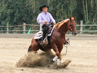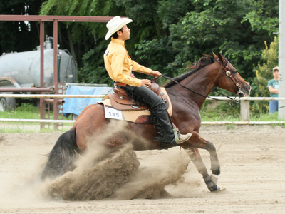 選んだ理由 スライディングストップが上手。ストップが得意。スピンもGood。クール。soft,gentle,good perfomancec,great horse.落ち着いている馬。ストップがいい。ランダウンストップ良し、スピン良し、サークルだって!