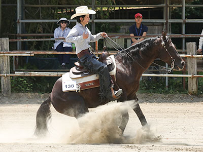 スピンの速さがすごい、スピン・ストップ+1、スピンはいいがサークルとランダウンが課題、スピンは素晴らしいがランダウンをもう少し改善してほしい、元々クォリティーの高いショーホースであるが少々メンタルにムラが見えるのでこれを改良できれば更なる高評価が得られることでしょう、スピードとパワーあふれる圧巻のパフォーマンス、スピードサークル・ロールバックがスピードあってかっこいい、どんな馬場でもストップを外すことは無い |