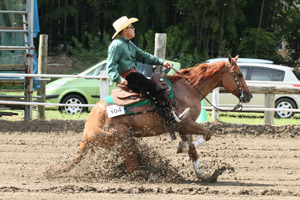 馬場のコンディションに左右され、なかなかスライディングストップを決めることが困難な中、La Tigre Del Cieloと石山真実選手が、馬場のコンディションを気にもせずスライディングストップを決めて見せた。