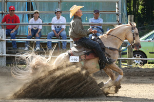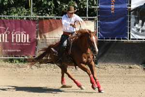 Caf King Jac と小林 孝之選手が、143ポイントを獲得して、見事日本一の座に就いたのだった。1stGo Round程の切れ味がなかったものの、安定したマインドと従順性の持ち味を発揮し高ポイントを叩きだして、同時にグランドチャンピオンも手にした。 リザーブチャンピオンは、Gold Flashy Bearと 増田 明子選手が、大きなミスなく確実な演技を見せて、その座に就いた。 また、Fifty Nifty Gold と 岡田 隆雄選手が、Ltd Non Pro DV で見せたコントロールをこのクラスでも発揮して、勝負強く3位に輝いた。 Open DV 2nd Go Round ノンプロのチャンピオンに輝いたCaf King Jacのディープなスライディングストップは、これまでに見ることができなかった姿で、革命的変化があったのではないだろうか。 そして、2013年のオープンの有終の美を飾ったのは、Eighty Six Classic と 土岐田 勘次郎選手で、3rd WJCに続いて連覇した。 更には、リザーブチャンピオンに輝いたのは、Shesa Reincarnationと袴田 桂子選手で、着実にライダーとしてのスキルを身につけた証しとしての結果を出した。 また、実力という点は、レイニングホースに本格的に携わって日の浅い前原 汐里選手の活躍もまた目を見張るものがあった。 Team Roping Header Dummy Green DV キャッチングミスが目立ち得点できない中で、唯一 2nd チャレンジで増田 明子選手がキャッチングを成功して、2010年以来の参戦ながら勝負強く優勝を果たした。 準優勝ながらも、スィングの見事さに目を見張ったのが、石山 尚子選手であった。本人にはまだその良さを理解できてなかった節があるものの、もしキャッチングが成功していれば、ダントツの成績になっていたのは間違いない。 Non Pro DV