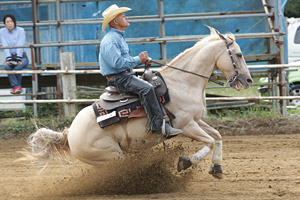10月6日(木曜日) Thursday Ancillary それぞれのクラスのライダーが、ショープランの作成やライダーと馬のスクーリングのために設けられたクラスで、その模様が伺えたクラスであった。 Green DV Champion Dancehall Sally 松本 則子選手(東京都) Ltd Non Pro DV Champion A Hollywood Hustler 林 雅子選手(東京都) Non Pro DCV Champion Fifty Nifty Gold 岡田 隆雄選手(福岡県) トータル7エントリーがあり、本クラスが設定され3大会を迎え、その考え方が定着し、今後の本番のレベルアップが期待される。 The Day 1st 10月7日(金曜日) Non Pro DV 1st Go Round 比較的ペナルティが多く見られ全体的に低調であったが、そんな中で堅実なガイドをキープしてトップに立ったのは、Senoritas Nicky 石山 尚子選手(千葉県)で、4ポイントビハインドで2位に付けたのはTomorrow Morning Caf 落合 身知子選手(埼玉県)、更に2ポイント差で3位に付けたのは、Smart Son(24歳) 宮下 月見選手(北海道)、 更にまた1ポイント差で4位に付けたのがFifty Nifty Gold 岡田 隆雄選手(福岡県)とトップから4位までが7ポイント差で、どれもが優勝圏内に止まる結果となった。 優勝圏内の4人の内石山選手と宮下選手は、2nd Go のでき如何では初優勝のチャンスを掴んだこととなった。 Open DV 1st Go Round 2016年の4戦のサーキットでは、1st SceneとWJC で2勝したFifty Nifty Gold 土岐田 騰馬(千葉県) Owner 岡田 隆雄(福岡県)、EWPC Congressで1勝したEighty Six Classic 土岐田 勘次郎(千葉県) Owner 佐藤 一彦(千葉県)、この2頭の激しい闘いが繰り広げられてきた。そしてEightyが優勝して2勝2敗の五分になれば、コングレスの賞金額が多分Eightyのグランドチャンピオンが決定し、一方FiftyがFinalで勝ち3勝すれば、文句なくFiftyがグランドチャンピオンとなることもあって、観客の目はこの2頭の戦いに集まるところとなった。 そして幕が開くと予想を違うことなく、両雄ともアグレッシブで圧巻なストップとスピードコントロールで217.0ポイント同点のハイスコアでトップに立ち、Eighty Six Classic 土岐田 勘次郎選手(千葉県) Owner 佐藤 一彦(千葉県)とWJC Open Champion のFifty Nifty Gold 土岐田 騰馬選手(千葉県) Owner 岡田 隆雄(福岡県)の一騎打ちの戦いの決着は、2日後の最終日の2nd Go Roundまで待たなければならなくなったのである。 The Day 2nd 10月8日(土曜日) Ancillary Class Green DV Champion Dancehall Sally 松本 則子選手(東京都)、ロングリードによるペナルティによって得点が伸びなかったものの、スムースなスピンとスライディングでその成長ぶりを発揮して優勝した。 Ltd Non Pro DV 優勝候補の筆頭に立っていたDancehall Sally 諸岡 辰浩選手(東京都)は、サークルの途中でリードが変わりペナルティが嵩み得点を伸ばすことができなかったが0.5ポイント差で辛くも逃げ切り、優勝とグランドチャンピオンの栄冠を手にした。そして、諸岡選手は、来る2017年では晴れてワンハンドライダーへ昇格し、ノンプロへ挑戦をすることとなった。 リザーブチャンピオンは、惜しくも0.5ポイント差で優勝を逃したLa Tigre Del Cielo 磯野 ひろ子選手(千葉県)で、ブレークゲイトで2ポイントの減点がなければ、初優勝の快挙を成し遂げることになったかも知れないのがかえすがえすも残念であった。 The Day Final 10月9日(日曜日) 最終日は、スコールのような大雨となり最悪のコンディションで迎えることとなった。 Non Pro DV 2nd Go Round 拮抗する優勝戦線で、トップに立っていたSenoritas Nicky 石山 尚子選手(千葉県)は、一つマヌーヴァーを忘れてしまい敢え無くペナルティ0を期して撃沈してしまった。 Fifty Nifty Gold 岡田 隆雄選手(福岡県)は、ハイクォリティのパフォーマンスであったがマーカー前でストップモーションに入り2ポイントペナルティを期して、0.5ポイントの僅差で優勝を逃し、リザーブチャンピオンに泣いた。Tomorrow Morning Caf 落合 身知子選手(埼玉県)は、今年からこの馬とコンビを組み、これまでストップとサークルのガイドで苦心していたようで成績が振るわなかったが、ここにきて安定したサークルとプラス得点を期待できるストップを見せるところまで成長し、1stGo Roundよりスコアを伸ばして2012年のLil Ruf Whip以来の優勝を果たした。 そして3位に入賞したのは、24歳の高齢馬Smart Son 宮下 月見選手(北海道)で、Non Pro クラスでは初入賞で、年齢に関わらず人馬共にパフォーマンスのレベルを上げているようである。 Open DV 2nd Go Round 注目は、Eighty Six Classic と Fifty Nifty Goldの戦いではあるものの、不良グランドコンディションとの戦いもまたライダーの深慮遠謀の見せ所となった。 ドロー抽選の結果、Draw 1stで演技したのは、Eighty Six Classic 土岐田 勘次郎選手 Owner 佐藤 一彦 で、1.5ポイントのペナルティを期して214.0とスコアを優勝安全圏まで伸ばすことができなかった。 後日談であるがライダーの土岐田 勘次郎選手は、この時点で内心優勝を逃したと残念がっていたようである。 注目のFifty Nifty Gold 土岐田 騰馬選手 Owner 岡田 隆雄(福岡県)は、思ったほどの切れ味がなく悪コンディションに呑まれたのか持ち前のディ