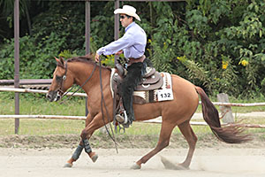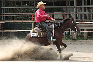 ■The Day 1st 10月9日(木曜日) Paid Warm Up ショーホースのスクーリングとしてペイドウォームアップがあった。 ペイドウォームアップは、1頭あたり10分間馬場を占有して、スクーリングができるもので、5頭のエントリーがあった。 ■The day 2nd 10月10日(金曜日) Non Pro DV Reining 1st Go Round 2025年のサーキット3戦中2戦においてチャンピオンとなっているChics Golden Du Lait 土岐田 藍(千葉県)が、ディープストップとスピードコントロールで得点して、141.5ポイントをマークして3勝に王手をかけたのである。 Open DV Reining 1st Go Round 1.5ポイント間に3頭が犇めく混戦状態となった。その中で、トップに立ったのは、Roughlysailorsfriend 土岐田 勘次郎(千葉県) Owned by Tiara Syndicate(千葉県)で、サークルストップとほぼアヴェレージ得点をマークして、141.0ポイントを獲得した。 2位につけたのは、今年のサーキット3戦全勝しているChics Golden Du Lait 土岐田 騰馬(千葉県) Owned by 土岐田 藍で、サークルで得点したがストップでグランドを外して、140.5ポイントとアヴェレージ得点をした。 3位につけたのは、Topsail Goldie 土岐田 騰馬 Owned by佐藤 一彦(千葉県)、スピンで+1/2をマークしたものストップで減点したので、アヴェレージ得点に0.5ポイント及ばず139.5ポイントをマークした。 Junior Horse DV Reining 1st Go Round(参考競技) 5頭の競技成立規定に達することができず、参考競技としてJunior Reiningのクラスが久々に復活し、2頭のエントリーがあった。その2頭は、2020年生まれで5歳のIts Little Pine と2021年生まれで4歳のSpooks Tokioであった。 Its Little Pineは、Sire Dun Its Little Lena Dam Moonshiny Pine、ブリーダーは、宮下 月見(北海道)で、Spooks Tokioは、 Sire Spooks Serenade Dam Whiz Sugar Dun、ブリーダーは、袴田 桂子(千葉県)で、何れもExhibiter は土岐田 騰馬で、Its Little Pineは8月から、Tokioは競技大会初出場と大会経験が浅いにも関わらずパフォーマンス中の態度の良さが素晴らしく、将来がとても期待されるものであった。 ■The Day 3rd 10月11日(土曜日) Ancillary Class Green DVとOpen DV各1頭のエントリーがあった。 Green DV Royalprincess ED 大貫 初美(千葉県)は、ブレークゲイト(2ポイントペナルティ)があって得点を伸ばすことができなかったが、外はアヴェレージスコアをマークし、馬の推進力を発揮することができれば、次回70.0ポイント越えるパフォーマンスが期待できそうであった。 Open DV Senoritas Nicky 土岐田 勘次郎 Owned by SN Syndicateは、Non Pro DVの2nd Go Roundの為のショーイングであった。 ■The Day Final 10月12日(日曜日) Non Pro DV Reining 2nd Go Round Chics Golden Du Lait 土岐田 藍が、サークルストップと無難なパフォーマンスで 139.5ポイントをマークして、 トータル 281.0ポイントで、サーキット4戦中3戦の優勝を成し遂げたのであった。 そして、2025年Non Pro Grand Championに輝いたのであった。