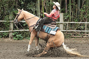 Topsail Goldie 土岐田 騰馬 Owned by 佐藤 一彦は、美しいスピンで得点して140.5ポイントをマークし、トータル280.0ポイントを獲得してリザーブチャンピオンに輝いた。1st Go Roundでトップスコアであった為にファイナルエントリーとなったRoughlysailorsfriend 土岐田 勘次郎 Owend by Tiara Syndicateは、順調にサークルスピンをこなしたところ、ロールバックに落とし穴があって、ペナルティスコア0となって、敢え無く優勝戦線から離脱することとなってしまったのである。 そこで浮上したのがChics Golden Du Lait 土岐田 騰馬 Owned by 土岐田 藍で、ストップで減点したもののサークルで得点し140.0ポイントマークしてトータル280.5ポイントとなり優勝した。 この結果、Non Proと Openのダブルチャンピオンに輝いたのである。更にまた、2025年サーキットのOpen Grand Championをも獲得したのである。 Junior Horse DV Reining 2nd Go Round(参考競技) 参考競技として復活したJunior Reiningは、馬齢5歳以下の馬のみがエントリーできるクラスである。 Spooks Tiokio 土岐田 騰馬 Owend by 袴田 桂子 は、1stGo Roundでノースコアを期してしまったので、2nd Go Round へ駒を進めることができず、Its Little Pine土岐田 騰馬 Owend by土岐田 勘次郎 の単独走行となり、1st Go Round より得点を加算することができて、次回が期待されるところとなったのである。 Team Roping Dummy Header Non Pro DV 予選は、71.5ポイントから70.0ポイントと低調なできであった。決勝ラウンドへ駒を進めたのは、石山 真実(千葉県)と土岐田 騰馬で、共に71.5ポイントであった。 決勝ラウンドは、土岐田 騰馬71.5ポイント、石山 真実71.0ポイントとなり、キャッチポイントであるフィギュア8のできに0.5ポイントの差がついて、土岐田 騰馬が見事チャンピオンと射止めたのである。 これまでのサーキット3戦では、大貫 初美と石山 真実と土岐田 騰馬の3人がグランドチャンピオン戦線において横並びであったが、本戦で優勝をはたした土岐田 騰馬が、一歩抜け出ることとなって、グランドチャンピオンの座を射止めたのであった。 「編集後記」 ライダーと馬との間の取り方について、ライダーは、どれくらいの意識を以てショーイングに望んでいるのだろかという疑問が湧いたのである。 ウエスタンでいうところのルーズレインは、ライダーと馬との間合いのことではないだろうか。 つまり、ライダーの馬とのコンタクトがどれくらいのレインのルーズさで可能なのかということで、その間合いの取れ具合が、レインのルーズさを決めているのであれば、ライダーのレインの長さに意識が働いていなくてはならないわけで、そのレインの長さが意識的にコントロールされていなければ、当然ライダーと馬とのコミュニケーションに不具合が生じてしまうので、高度なパフォーマンスには繋がらないのではないだろうか。 |