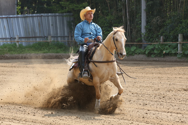 馬のムーブメント・スタイルそしてスピードの緩慢が、レイニングの醍醐味といって良いのではないかと思っていて、このパフォーマンスで明日の日本を切り開こうと思ってアピールしてきました。