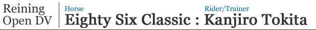 A1:誰もが認める名馬であるEighty Six Classicをトレーニング及びショーイングに今年1年心掛けてきたことは、世界のレイニングホースの柔軟性とコンセントレーションの精度と同等以上のクォリティです。