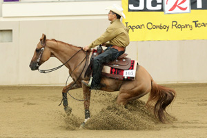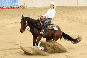 Dreams Of Chics (Owned by Joji Ohno) which that it was at the top managed the maneuver certainly, and began to beat 216.5 points, and growth -- it was remarkable Shiori Maehara (Fukuoka Prefecture). Probably, you may say that championship argument is made confused, since every horse has explosive power in here No. 1 although the difference of 5.5 points came out less than in the 2nd place. The Day 2nd Fri., September5 Ancillary Class Open DV There is an entry of two horses and Whiz N Pep and Tohma Tokita (Chiba Prefecture) showed safe performance as schooling for 2nd GoRound of Open DV. Green DV This DV with many players of the first participation is a class asked also about the ability of each club and the trainer which it took charge of, It is also interesting to see by eyes of seeing the program of newcomer training of the horse on which a rider's ability also brings big influence to the game life of a rookie rider's future with last thing, and enters this class, and an affiliation club. And the results were contents which are not amusing, even if who won the victory. Benito Eldorado Junior Reining Horse Grand Champion Open Reining Champion These three horses were the horses which had the above shining career in the past. And Benito Eldorado and Tatuhiro Morooka (Chiba Prefecture) of one year and a horse-riding history half controlled this class, and it gained the plus score, shone with the sliding stop and the spin splendidly excellent, and gained the champion buckle. Runners-up to the championship are Chiquito Spark and Mieko Sasaki (Fukuoka Prefecture), though sorry for somewhat many penalties to be although performance was equivalent to the championship player, have yielded the championship, but As it had a Taisho lyre (Japanese koto) in Rein again and it is purified every day, I would like to expect future activity. Ltd Non Pro DV