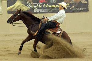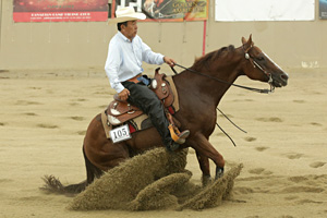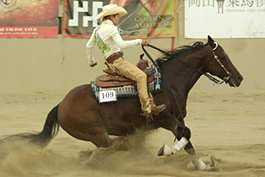 One Day Before Ancillary (9月5日 水曜日) Open DV Dunit Pepper Doll 前原 汐里(福岡県) Owned by 佐藤 奈緒(福岡県) Non Pro DV Dreams Of Chics 大野 城児(福岡県)の2頭のエントリーがあり、それぞれ本番のためスクーリングの目的でのショーイングであった。 The Day 1st (9月6日 木曜日) Non Pro DV 1stGo Round 首位に立ったのは、Coco Kiddy 朝倉 洋子(福岡県)で、安定感のあるスピードコントロールとスピンターンで209.0ポイントとアヴェレージスコアを叩き出し、2017年度のノンプログランドチャンピオンの実力を発揮した。これに続いたのは、初のノンプロ挑戦であったDreams Of Chics 大野 城児(福岡県)で、グランドコンディションをものともしないディープストップのパフォーマンスで207.5ポイントをマークした。 Dun Its Little Lena 土岐田 藍(千葉県)205.5ポイント、Whizlin Whoaman 末廣 まどか(千葉県)204.5ポイントとつづき、砂の深さがどの馬にとってもリスクとなったようで、2nd Go Round までにこの対策如何で優勝が決まりそうである。 Open DV 1st Go Round このクラスは、3位までが団子状態となって、優勝争いが混戦状態の様相を呈した。 その中144.0ポイントで首位に立ったのは、サーキットのニューフェイスである Chics Top Cody 土岐田 騰馬(千葉県) Owned by林 雅子(東京都)で、スピンとストップで得点を稼ぎ出した。 2位につけたのは、少々パフォーマンスに切れの欠いた感があったEighty Six Classic 土岐田 勘次郎(千葉県)Owned by 磯野 ひろ子(千葉県)は、141.5ポイントであった。そして3位につけたのは、140.0ポイントのGold Flashy Bear 前原 汐里 Owned by 北村 栄作(大阪府)で、ストップで得点を稼いだようであった。 この3頭に優勝が絞られたような1st Goであったが、オープンクラスもまたグランドの砂の深さに手を焼いていたようであった。 The Day 2nd (9月7日 金曜日) Ancillary Class Open DV3頭のエントリーがあり、Dunit Pepper Doll 前原 汐里 Owned by 佐藤 奈緒 が、70.5ポイントをマークして優勝した。 LTD Non Pro DV 優勝の栄冠を手にしたのは、Dreams Of Chics 大野 城児で、206.0ポイントをマークし、ディパーチャーでペナルティがあったもののストップで減点されることのないパフォーマンスであった。 2位につけたのは、Dunit Pepper Doll 佐藤 奈緒で、204.0ポイントをマークし後塵を拝したものの、レイン捌きで目を見張る上達を見せてくれた。 The Day Final (9月8日 土曜日) Non Pro DV 2nd Go Round日本一の栄冠を手にしたのは、Dreams Of Chics 大野 城児で、214.0ポイントの高得点をマークして、この馬の良さを如何なく発揮したパフォーマンスであった。また、+1に近い+1/2のスピンとディープなストップで、本人初のノンプロ挑戦で優秀という快挙をなした。 そして、大野選手は、LTD NPとNPの2冠を同時達成したのであった。 リザーブチャンピオンは、Dream Of Chics 末廣 まどかで、210.5ポイントとアヴェレージ越えを果たして、1stGo 4位を挽回して、優勝には及ばなかったもののこのクラスを盛り上げるようなパフォーマンスであった。 1st Scene とコングレスを2連覇をしていたDun Its Little Lena土岐田 藍は、3ポイントのペナルティがひびいて撃沈、昨年のグランドチャンピオンのCoco Kiddy 浅倉 洋子は、馬のコンセントレーションが欠けていたようで振るわなかった。 Open DV 2nd Go Round 優勝圏内の3頭の最初の出場がChics Top Cody 土岐田 騰馬で、+1ストップ、+1/2のスピンとパフォーマンスが続く中、最後のディープストップで、誰もが優勝間違いなしと思った瞬間ドラマが起こった。ストップの直後に何とバッキングしたのであった。5ポイントペナルティで2ジャッジなのでトータル10ポイントの減点で、133.0ポイントになり撃沈してしまった。 2頭目の馬として出場したのは、Gold Flashy Bear 前原 汐里 Owned by 北村 栄作で、緩急あるサークルとディープなストップで143.0ポイントマークして、最後のエントリーであるEighty Sixを待つこととなったのである。